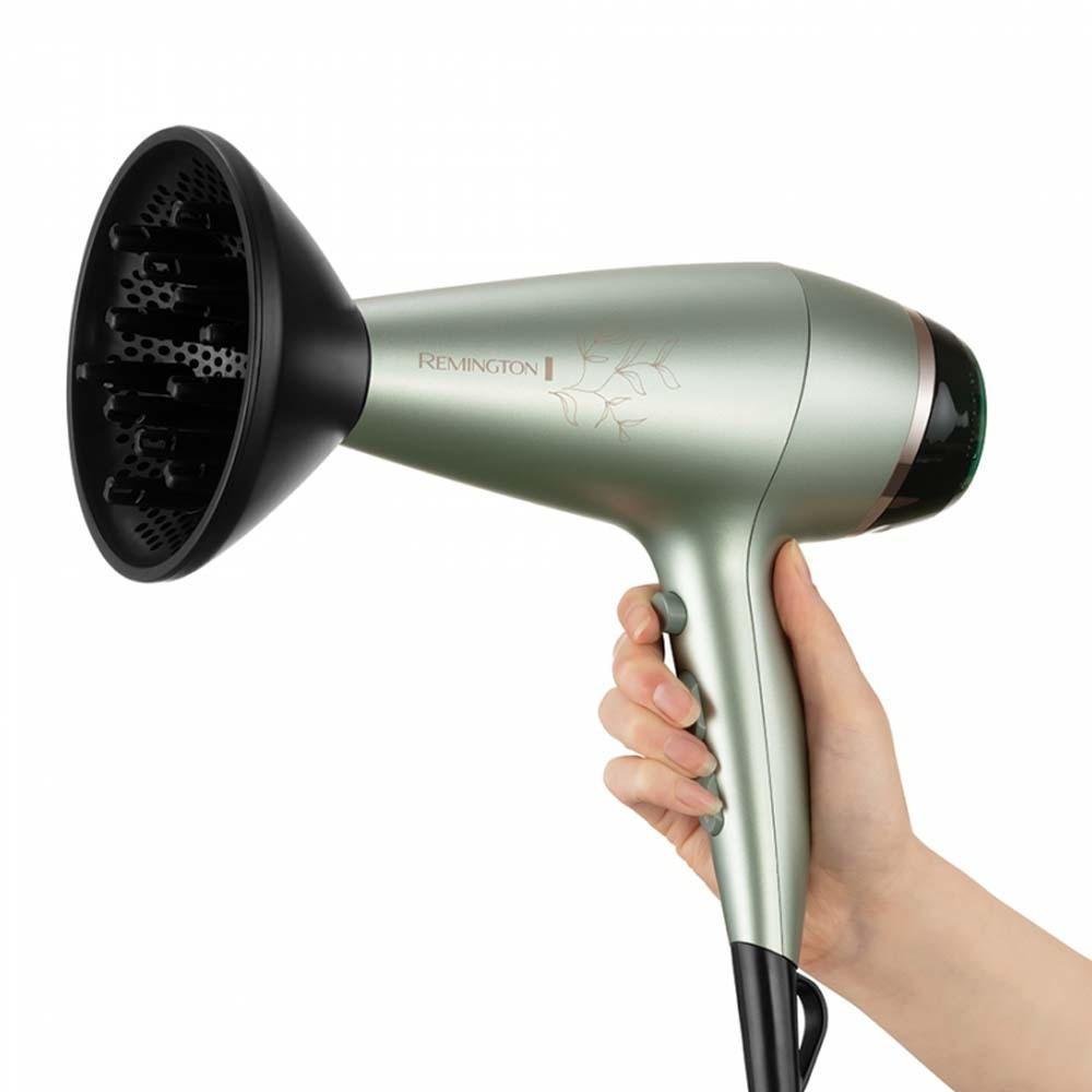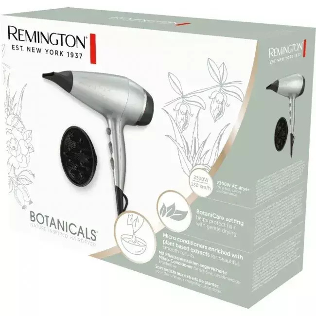 Το πιστολάκι μαλλιών Remington AC5860 E51 Botanicals διαθέτει Micro-Conditioners εμποτισμένα με Aloe Vera, Jojoba και εκχύλισμα τριαντάφυλλου που ενισχύουν την ομορφιά των μαλλιών. Τα Micro-Conditioners απελευθερώνονται στον αέρα και φροντίζουν την τρίχα κατά τη διάρκεια του στεγνώματος. Χάρη στη ρύθμιση BotaniCare, τα μαλλιά στεγνώνουν σε χαμηλότερη θερμοκρασία, προσφέροντας ιδανικά αποτελέσματα.