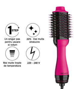 Ηλεκτρική βούρτσα μαλλιών Salon One-Step Volumizer της Revlon με στρογγυλεμένες άκρες που δημιουργούν γρήγορα styling.