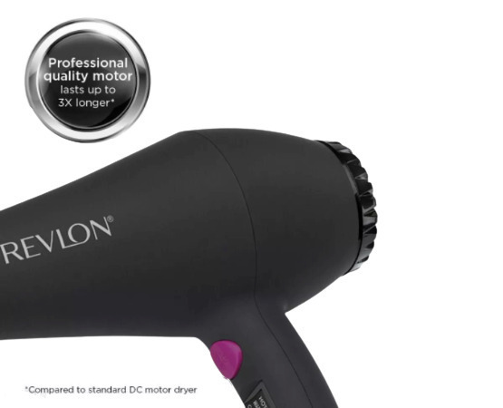 Πιστολάκι μαλλιών της Revlon, που διαθέτει υψηλή ισχύ με δυνατή ροή αέρα για γρήγορο στέγνωμα και φορμάρισμα των μαλλιών. Παρέχει λειτουργία ιονισμού, μια τεχνολογία που βοηθάει στο να μην ηλεκτρίζονται τα μαλλιά, προσφέρει περισσότερο όγκο και δεν επιτρέπει το φριζάρισμά τους. Επιπλέον, διαθέτει φυσούνα για το φορμάρισμα των σπαστών ή σγουρών μαλλιών. Η ροή του αέρα κατανέμεται κατά μήκος της τρίχας, ενισχύοντας τον όγκο και μειώνοντας το φριζάρισμα κατά το στέγνωμα. Για καλύτερα αποτελέσματα, θα πρέπει η φυσούνα να χρησιμοποιείται κοντά στις ρίζες των μαλλιών.