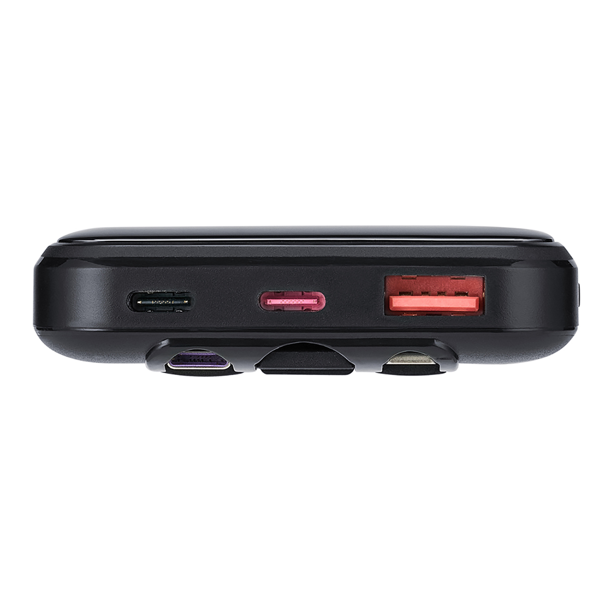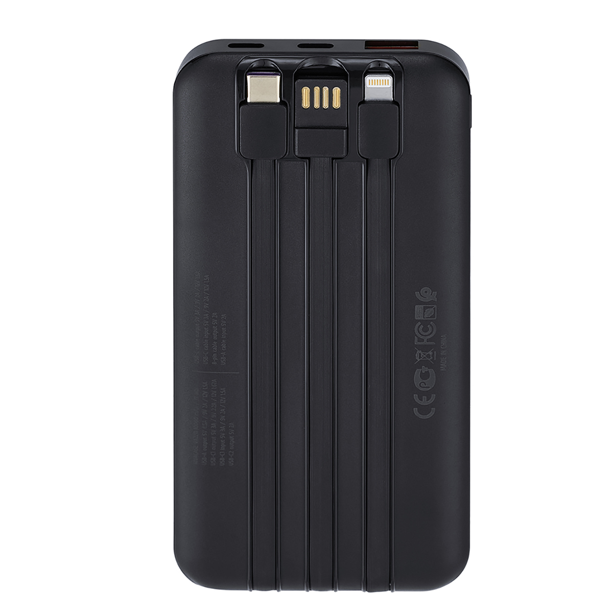 - Ενσωματωμένα Καλώδια: Περιλαμβάνει καλώδια USB-C, Lightning και USB-A, χωρίς ανάγκη για επιπλέον καλώδια.