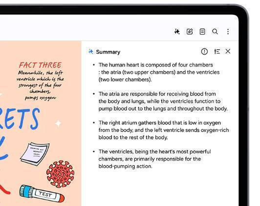 Αποκτήστε σημειώσεις διαλέξεων με λίγα μόνο πατήματα ακόμα και κατά τη διάρκεια ενεργειών multitasking. Το Note Assist απομαγνητοφωνεί ηχογραφήσεις από υποστηριζόμενες γλώσσες (δεν υποστηρίζονται τα ελληνικά) και τις οργανώνει σε σημειώσεις, δημιουργώντας αποτελεσματικές συνόψεις.