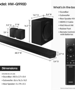 Σχεδιασμένο για να παράγει έναν εντυπωσιακά καθηλωτικό ήχο, διαθέτει τρεις τύπους ηχείων – εμπρόσθια, πλευρικά και ανοδικής κατεύθυνσης – όλα ενσωματωμένα στο πλαίσιο της συσκευής.