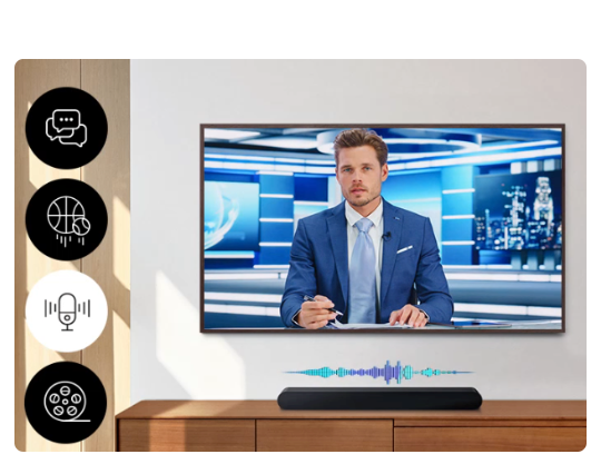 Ακούστε καθαρούς διαλόγους με το Samsung Soundbar. Το κεντρικό ηχείο προσαρμόζει την απόδοση της ανθρώπινης φωνής και προσφέρει καθαρό ήχο στους διαλόγους.