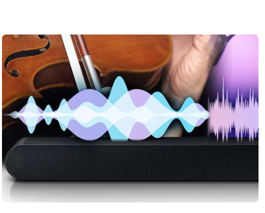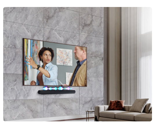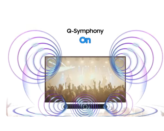 Η τεχνολογία Q-Symphony επιτρέπει τόσο στα ηχεία της τηλεόρασης όσο και στο Soundbar να παίζουν ταυτόχρονα σε πλήρη αρμονία, αναπαράγοντας ήχο βελτιστοποιημένο με τεχνητή νοημοσύνη.