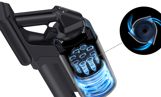 Απολαύστε καθαρό αέρα και εξαιρετική ισχύ αναρρόφησης με τον κυκλώνα Jet υψηλής απόδοσης με την κατασκευή πολλαπλών κυκλώνων. Η ροή του αέρα μειώνει την αντίσταση του αέρα και οι 9 κυκλώνες του με τις 27 εισόδους αέρα μειώνουν την απώλεια αναρρόφησης. Επίσης, παγιδεύει μικροσωματίδια της σκόνης που ρουφάει η ηλεκτρική σκούπα.