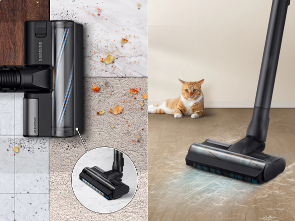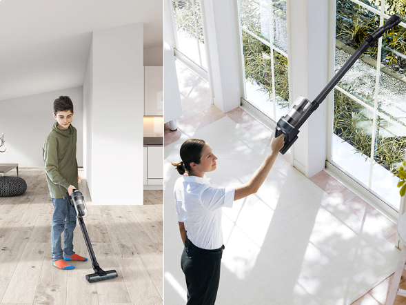 Καθαρίστε το σπίτι σας χωρίς κόπο, με εύκολο έλεγχο και ευέλικτη κίνηση. Ο ελαφρύς σχεδιασμός εξασφαλίζει χρηστικότητα και σχεδόν δεν επιβαρύνει τον καρπό σας. Ο συμπαγής κορμός ζυγίζει μόλις 1,44kg, ο οποίος είναι 11% πιο ελαφρύς σε σχέση με τους συμβατικούς καθαριστές Samsung. Έτσι, μπορείτε να καθαρίζετε με άνεση και ευκολία όλο το σπίτι σας.