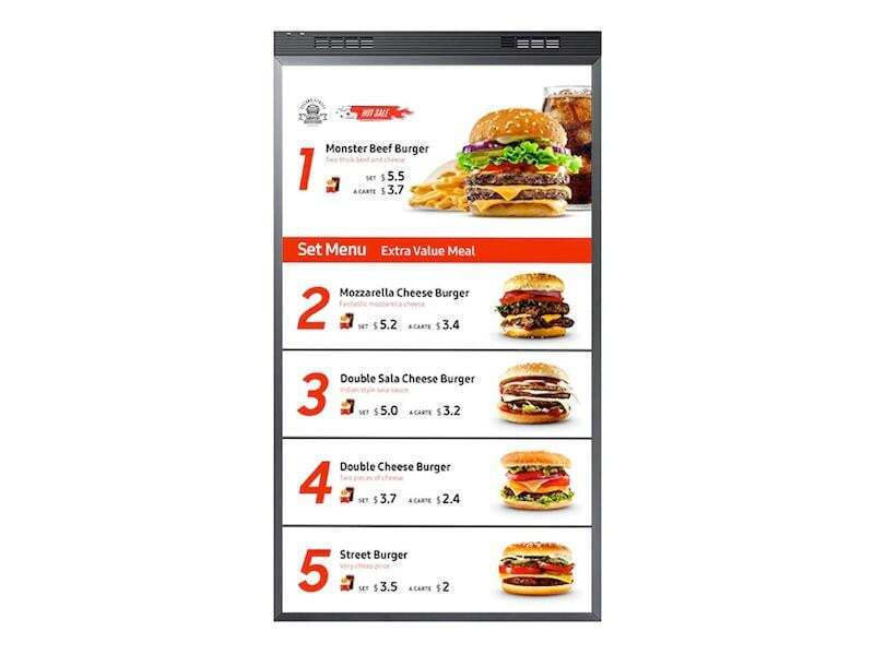 Οθόνη Public Display με άψογη διαχείριση καλωδίων. Η οθόνη 55 ιντσών είναι ιδανική για εξωτερική χρήση και προσφέρει βέλτιστη αναγνωσιμότητα ακόμη και σε ηλιακό φως και από οποιαδήποτε γωνία θέασης. Με την διπλή όψη, η συσκευή είναι εξαιρετικά ευέλικτη, προσφέροντας περισσότερες δυνατότητες για τις διαφημιστικές σας καμπάνιες. Ο ενσωματωμένος MagicInfo Player S7 και το λειτουργικό σύστημα Tizen 5.0 προσφέρουν επίσης γρήγορο και εύκολο τρόπο διαχείρισης του περιεχομένου σας.