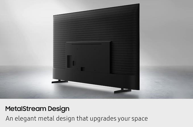 Κομψός μεταλλικός σχεδιασμός που ταιριάζει σε κάθε χώρο. Με έμπνευση από τον σχεδιασμό αεροσκαφών, η τηλεόραση διαθέτει ένα εκλεπτυσμένο μεταλλικό πλαίσιο. Χρησιμοποιείται μόνο ένα φύλλο μετάλλου για το λεπτό πλαίσιο, εξασφαλίζοντας μια πραγματικά καθηλωτική εμπειρία.