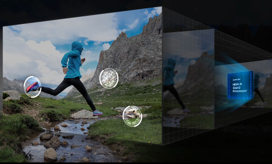 Ο επεξεργαστής 4K της Samsung ενισχυμένος με AI δημιουργεί μια συναρπαστική εμπειρία προβολής 4K. Η τεχνολογία 4K AI Upscaling ενισχυμένη με 20 νευρωνικά δίκτυα AI κάνει το περιεχόμενο σχεδόν εφάμιλλο με ποιότητα εικόνας 4K. Ο επεξεργαστής NQ4 AI Gen2 Processor αναβαθμίζει την εικόνα και τον ήχο για να έχετε μια εμπειρία θέασης 4K είτε κάνετε streaming σε υπηρεσίες OTT, είτε παίζετε τα αγαπημένα σας video games, είτε παρακολουθείτε ζωντανές αθλητικές μεταδόσεις.