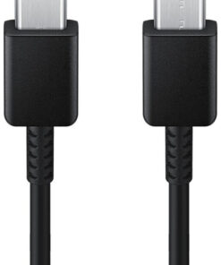Καλώδιο με δύο ακροδέκτες USB-C για τη γρήγορη φόρτιση του κινητού και ταυτόχρονη μεταφορά δεδομένων μεταξύ κινητού και υπολογιστή.