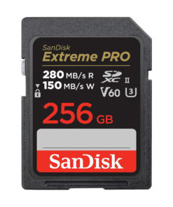 Η κάρτα μνήμης Extreme PRO UHS-II SDXC 256 GB από τη SanDisk έχει σχεδιαστεί για επαγγελματίες φωτογράφους που χρησιμοποιούν DSLR, mirrorless ή κινηματογραφικές κάμερες. Επιτρέπει την καταγραφή βίντεο κινηματογραφικής ποιότητας 6K, 4K και Full HD, καθώς και ακατέργαστες φωτογραφίες, εικόνες time-lapse και συνεχείς ριπές κλείστρου.