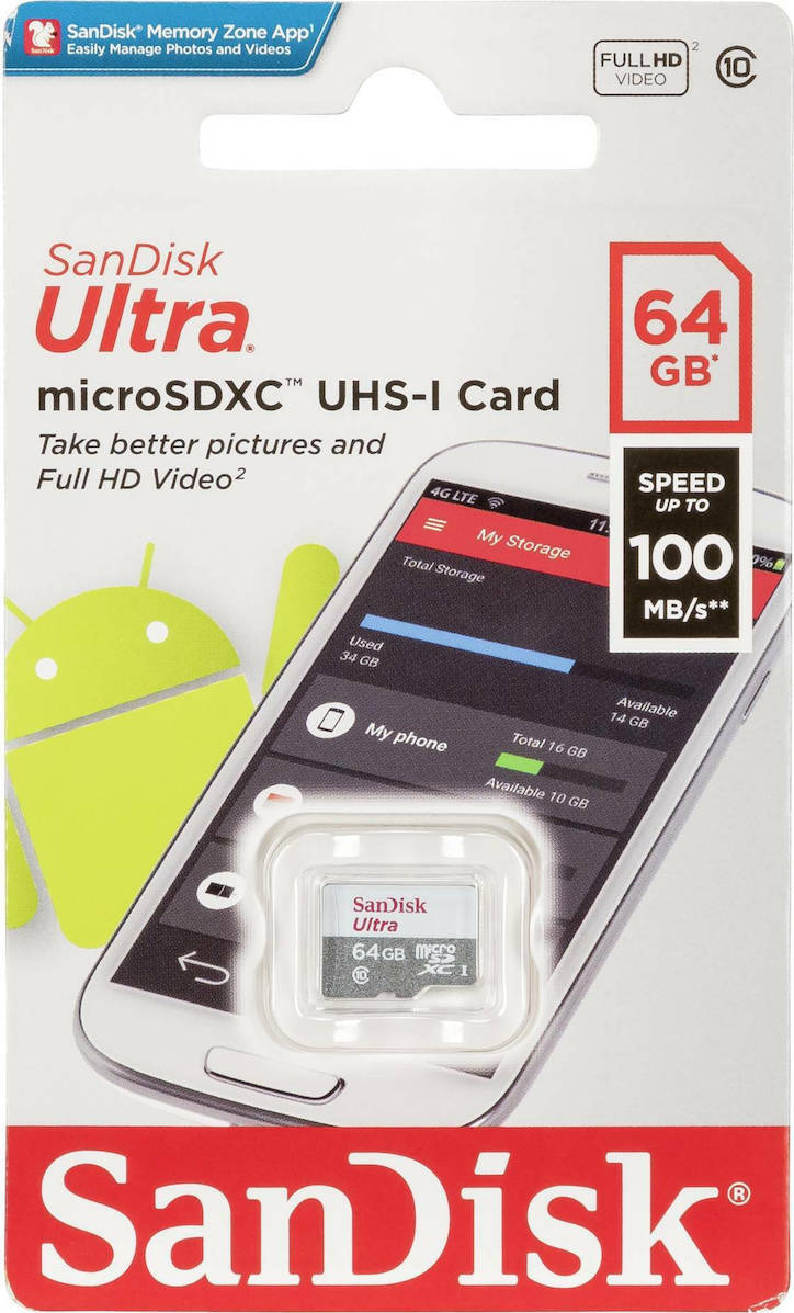Η κάρτα SanDisk Ultra® microSD™ UHS-I σας προσφέρει τη δυνατότητα να πραγματοποιείτε λήψεις, να αποθηκεύετε και να μοιράζεστε περισσότερα από ποτέ. Με χωρητικότητες έως και 512GB1, η κάρτα μας SanDisk Ultra microSD™ διαθέτει χώρο για ακόμη περισσότερες ώρες βίντεο full HD3 και προσφέρει ταχύτητες μεταφοράς έως και 100MB/s2, για να μεταφέρετε περιεχόμενο γρήγορα.
