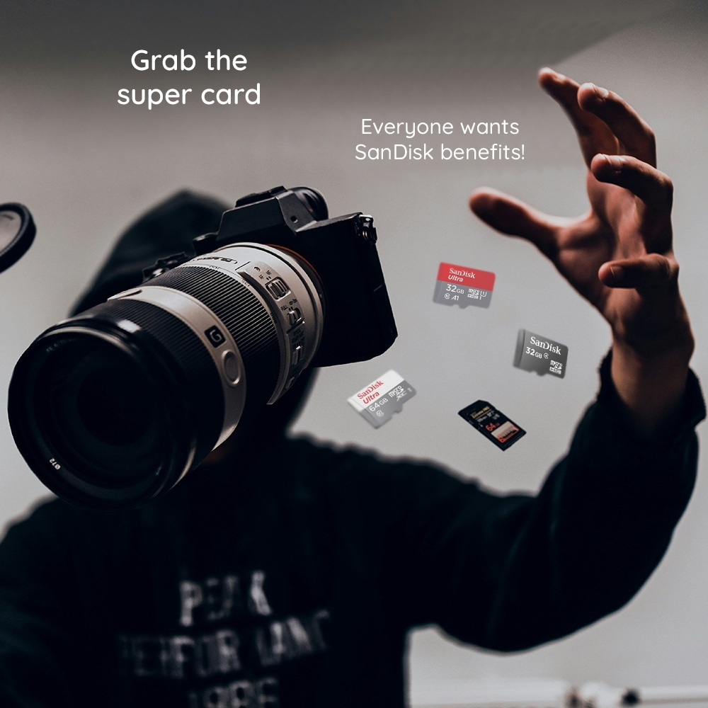 Η κάρτα SanDisk Ultra® microSD™ UHS-I σας προσφέρει τη δυνατότητα να πραγματοποιείτε λήψεις, να αποθηκεύετε και να μοιράζεστε περισσότερα από ποτέ. Με χωρητικότητες έως και 512GB1, η κάρτα μας SanDisk Ultra microSD™ διαθέτει χώρο για ακόμη περισσότερες ώρες βίντεο full HD3 και προσφέρει ταχύτητες μεταφοράς έως και 100MB/s2, για να μεταφέρετε περιεχόμενο γρήγορα.