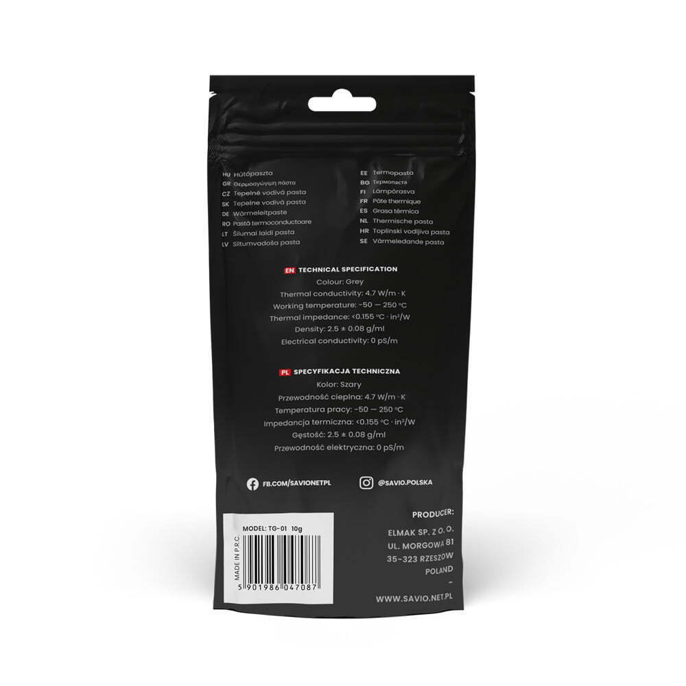 Το SAVIO TG-02 γεμίζει τέλεια τις μικροσκοπικές κοιλότητες στις επιφάνειες του επεξεργαστή και του ψυγείου. Παρέχει τέλειες παραμέτρους αγωγιμότητας. Τα μικροσωματίδια άνθρακα που περιλαμβάνονται στην πάστα καλύπτουν επαρκώς όλες τις κοιλότητες. Οδηγεί σε υψηλή θερμική αγωγιμότητα, εξασφαλίζοντας ότι η θερμότητα απομακρύνεται γρήγορα και αποτελεσματικά.