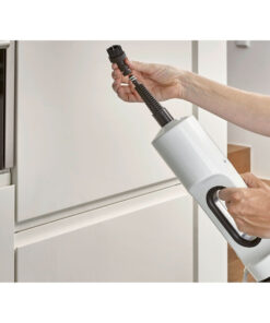 Είναι εξοπλισμένος με ενιαίο κοντάρι, διευκολύνοντας τον ελιγμό γύρω από τα έπιπλα, ενώ σας επιτρέπει να σφουγγαρίζετε αποτελεσματικά σε όλους τους χώρους του σπιτιού, όπως κουζίνα, μπάνιο και τουαλέτα. Αυτή η συσκευή προορίζεται για χρήστες που επιθυμούν έναν ανθρώπινο και φιλικό προς το περιβάλλον τρόπο καθαρισμού.