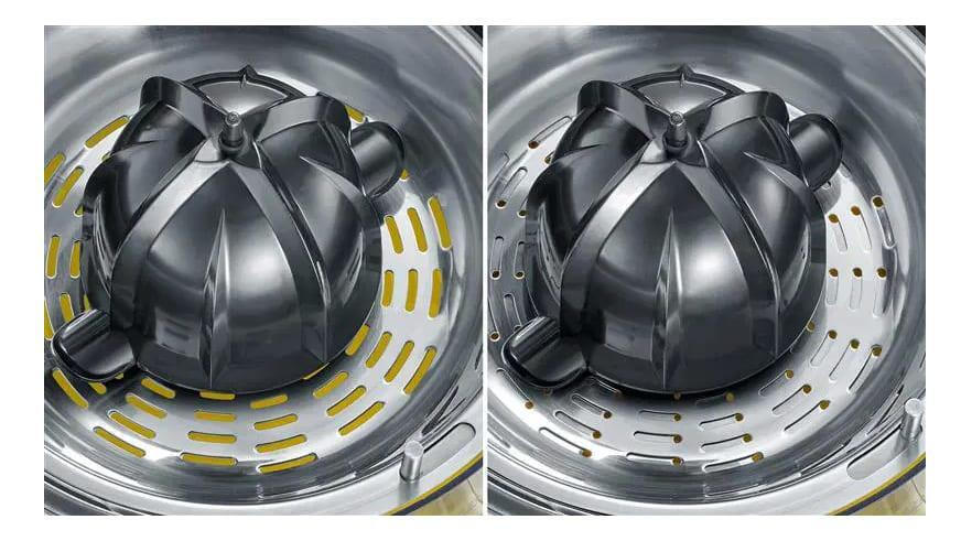 - Ρυθμίστε εύκολα την περιεκτικότητα σε πολτό φρούτων χρησιμοποιώντας δύο αφαιρούμενα και ρυθμιζόμενα φίλτρα από ανοξείδωτο χάλυβα.