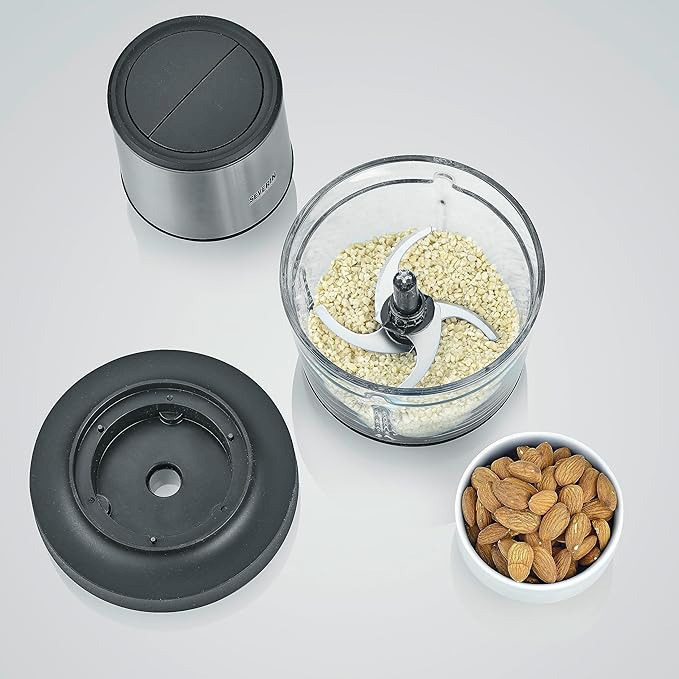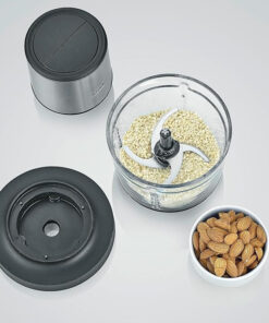 Η χωρητικότητα του είναι 1 λίτρο με βαθμονομημένη κλίμακα, καλύπτοντας τις ανάγκες 2-3 ατόμων. Διαθέτει 2 σετ λεπίδων, τα οποία μπορούν να χρησιμοποιηθούν είτε μεμονωμένα για μικρές κοπές, είτε μαζί για μεγαλύτερα υλικά. Έχει 2 ταχύτητες για την επιλογή της κατάλληλης έντασης, ανάλογα με το είδος και το μέγεθος του τροφίμου.