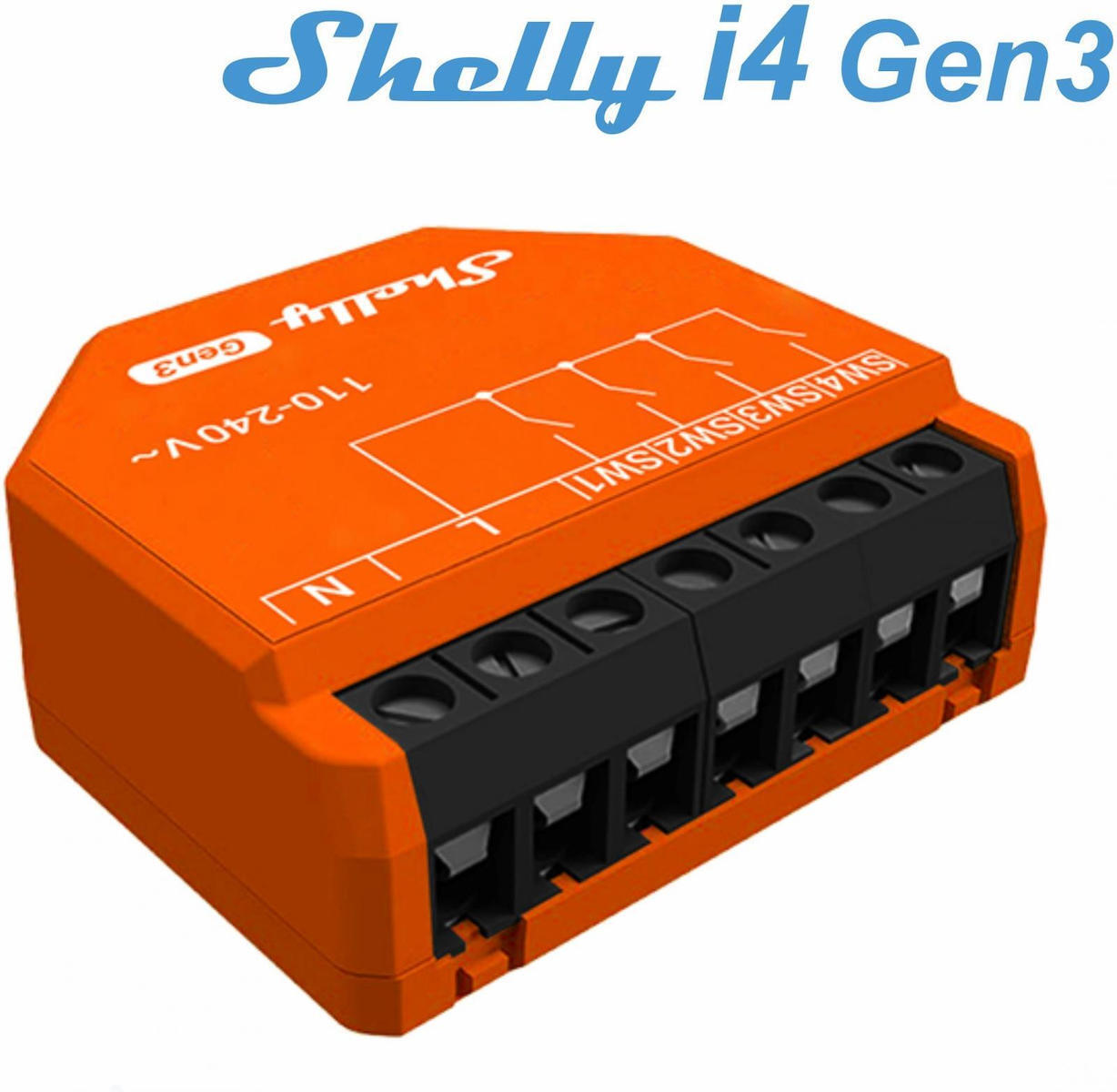 Ελεγκτής 4 ψηφιακών εισόδων που λειτουργεί με Wi-Fi. Με τη δυνατότητα διαχείρισης 4 ψηφιακών εισόδων, το Shelly i4 Gen3 σάς δίνει τη δυνατότητα να ενεργοποιήσετε ή να απενεργοποιήσετε με μη αυτόματο τρόπο οποιαδήποτε σκηνή που δημιουργήθηκε, να συγχρονίσετε ενέργειες ή να εκτελέσετε σύνθετα σενάρια ενεργοποίησης.