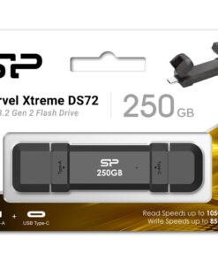 Εξωτερικός SSD SILICON POWER Marvel Xtreme DS72 με χωρητικότητα 250GB. Υποστηρίζει συνδεσιμότητα USB-C και USB 3.2 για γρήγορη μεταφορά δεδομένων. Το μοντέλο διατίθεται σε μαύρο χρώμα.