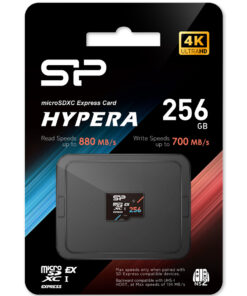 Η SILICON POWER κάρτα μνήμης microSDXC Express Hypera προσφέρει χωρητικότητα 256GB και υποστηρίζει πρότυπα PCIe Gen 3×1. Διαθέτει κάθοδο Class 10 (C10), UHS Speed Class 3 (U3), Application Performance Class 1 (A1) και Video Speed Class 30 (V30), καθιστώντας την κατάλληλη για γρήγορη και αξιόπιστη αποθήκευση δεδομένων.