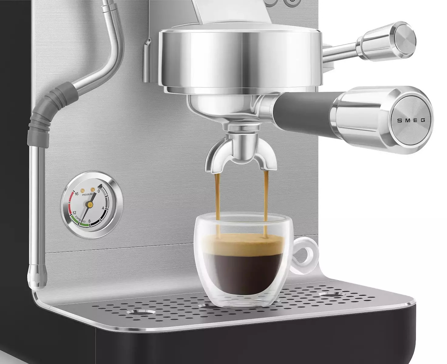Αυτή η αυτόματη μηχανή Espresso από τη Smeg συνδυάζει λειτουργικότητα και στυλ, επιτρέποντας σε κάθε χρήστη να απολαμβάνει τον καφέ του όπως ακριβώς τον επιθυμεί. Χρησιμοποιώντας αλεσμένο καφέ espresso, μπορείτε να επιλέξετε το μέγεθος κοπής σύμφωνα με τις προτιμήσεις σας. Με το πάτημα ενός κουμπιού, επιλέγετε την δόση που θέλετε, και η μηχανή ξεκινά τη διαδικασία εκχύλισης, η οποία σταματά αυτόματα μόλις ολοκληρωθεί. Ανάμεσα στα χαρακτηριστικά της, η ισχύς των 1650 Watt εξασφαλίζει γρήγορη θέρμανση του νερού, ενώ η χωρητικότητα του αποσπώμενου δοχείου νερού των 1,5 λίτρων σας επιτρέπει να ετοιμάσετε έως και 25 μονά φλυτζάνια καφέ πριν χρειαστεί να το ξαναγεμίσετε. Η πίεση των 15 bar που παρέχεται από το boiler είναι ιδανική για να εξασφαλίσει έναν πλούσιο και κρεμώδη espresso, αναδεικνύοντας τα αρώματα του καφέ σας.