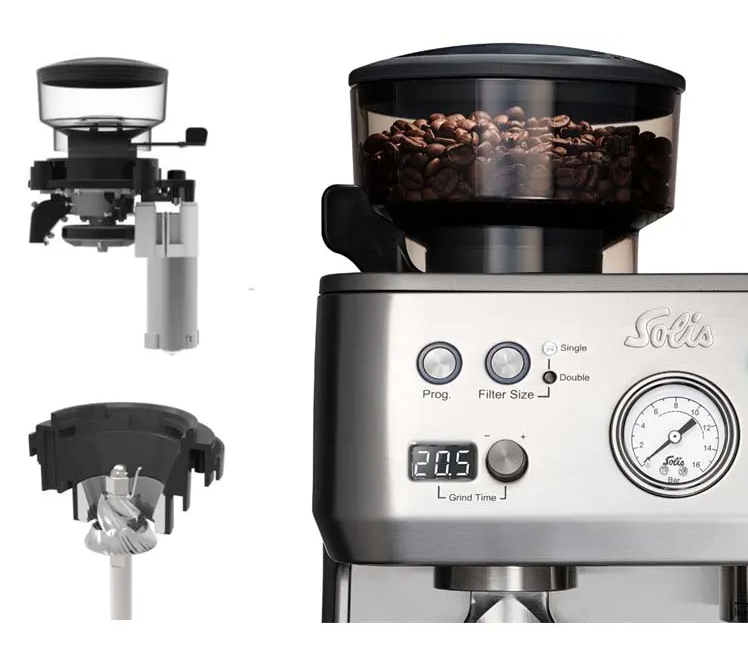 - Αντλία εσπρέσο ιταλικού τύπου – Η ισχυρή αντλία εσπρέσο λειτουργεί με πίεση 16 bar για ιδανική εκχύλιση. Οθόνη 3 ψηφίων που δείχνει το χρόνο παρασκευής μέχρι το δέκατο του δευτερολέπτου για βέλτιστη παρασκευή καφέ.