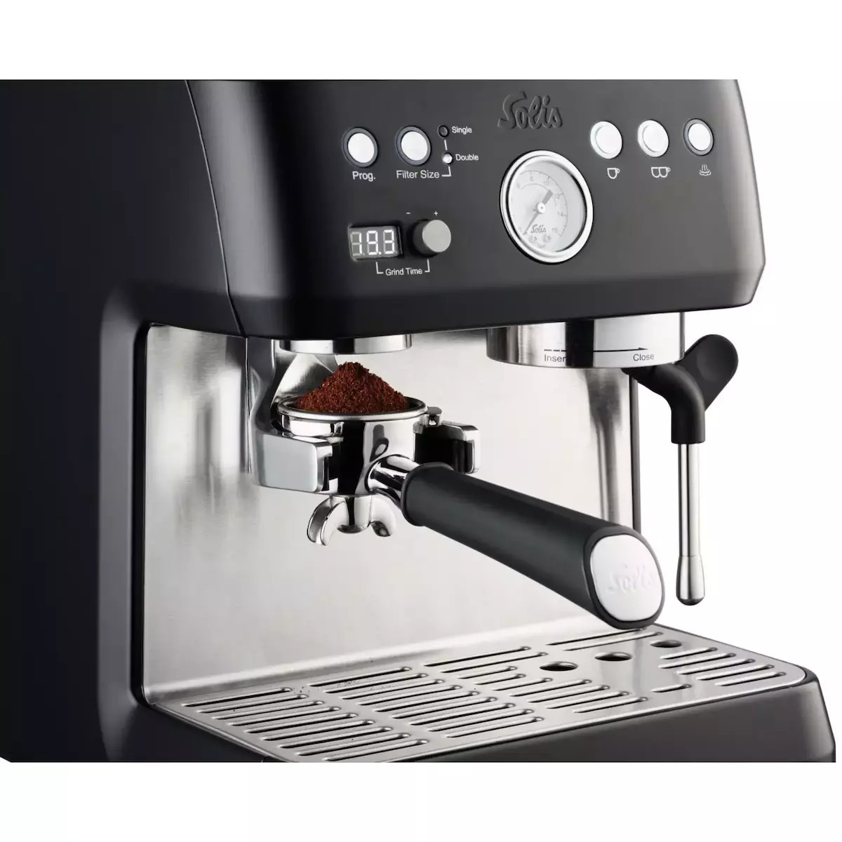 - Ενσωματωμένο μανόμετρο – Το μανόμετρο επιτρέπει τον πλήρη έλεγχο της πίεσης εκχύλισης για ένα τέλεια ισορροπημένο φλιτζάνι καφέ.