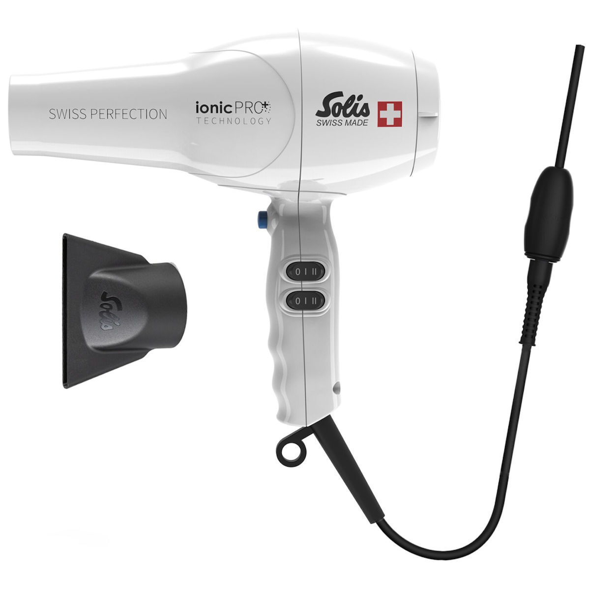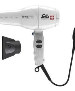Πιστολάκι μαλλιών Solis Swiss Perfection 360 ionic Pro. Το πιστολάκι 360° ionicPRO προσθέτει λάμψη στα μαλλιά, αφαιρεί το φριζάρισμα και η αλλαγή θερμοκρασίας κλείνει τις εξωτερικές κολόνες των μαλλιών.