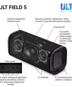 - Επιπλέον Πληροφορίες: Λειτουργία προσθήκης ηχείου – Speaker Add, LED – φωτισμός χρώματος, δυνατότητα σύνδεσης πολλών ηχείων – Party Connect, γρήγορη σύνδεση – Google Fast Pair, ψηφιακός ενισχυτής S-Master, βελτίωση ήχου – ULT Power Sound