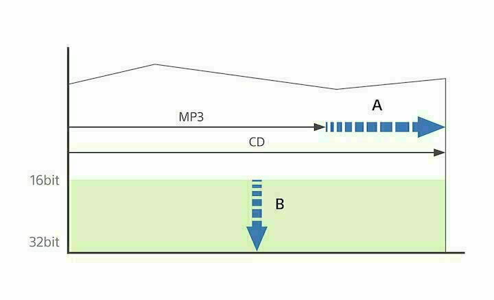 Όταν η αρχική πηγή της μουσικής συμπιέζεται, οι υψηλές συχνότητες που εμπλουτίζουν κάθε κομμάτι χάνονται. Το σύστημα ψηφιακής βελτίωσης ήχου (DSEE) της Sony τις αποκαθιστά πιστά, για να σας προσφέρει ήχο υψηλής ποιότητας, που πλησιάζει την πρωτότυπη εγγραφή. [A] Αποκατάσταση [B] Αποκατάσταση υψίσυχνων ήχων