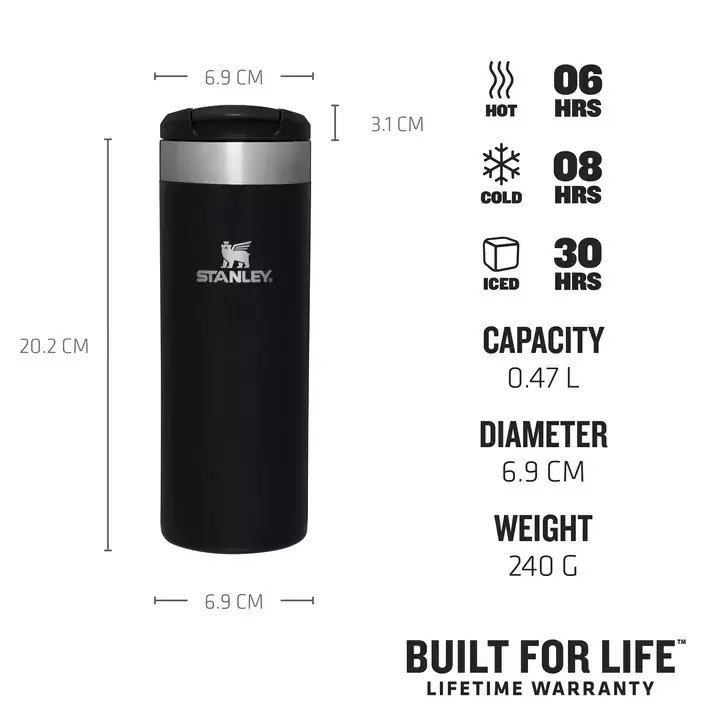 Το Stanley AeroLight Transit Mug είναι ένα κομψό και εξαιρετικά ελαφρύ θερμός με leak‑proof “drink‑through” καπάκι και vacuum μόνωση. Διατηρεί τον καφέ ζεστό για έως 4 ώρες, δροσερά ποτά για έως 6 ώρες και ροφήματα με πάγο έως 20 ώρες. Η εργονομική του κατασκευή τον κάνει ιδανικό για καθημερινή χρήση και μεταφορές.