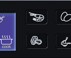 Τέλος διαθέτει ψηφιακή οθόνη για τη δυνατότητα επιλογής προκαθορισμένων λειτουργιών μαγειρέματος ή για τον προγραμματισμό του χρονόμετρου.