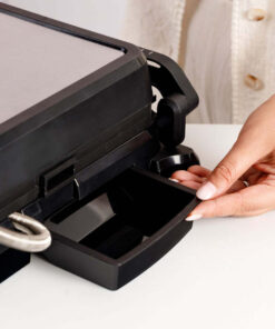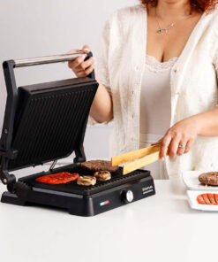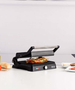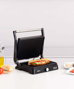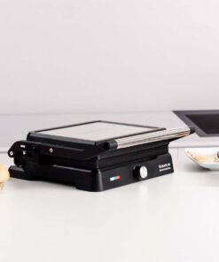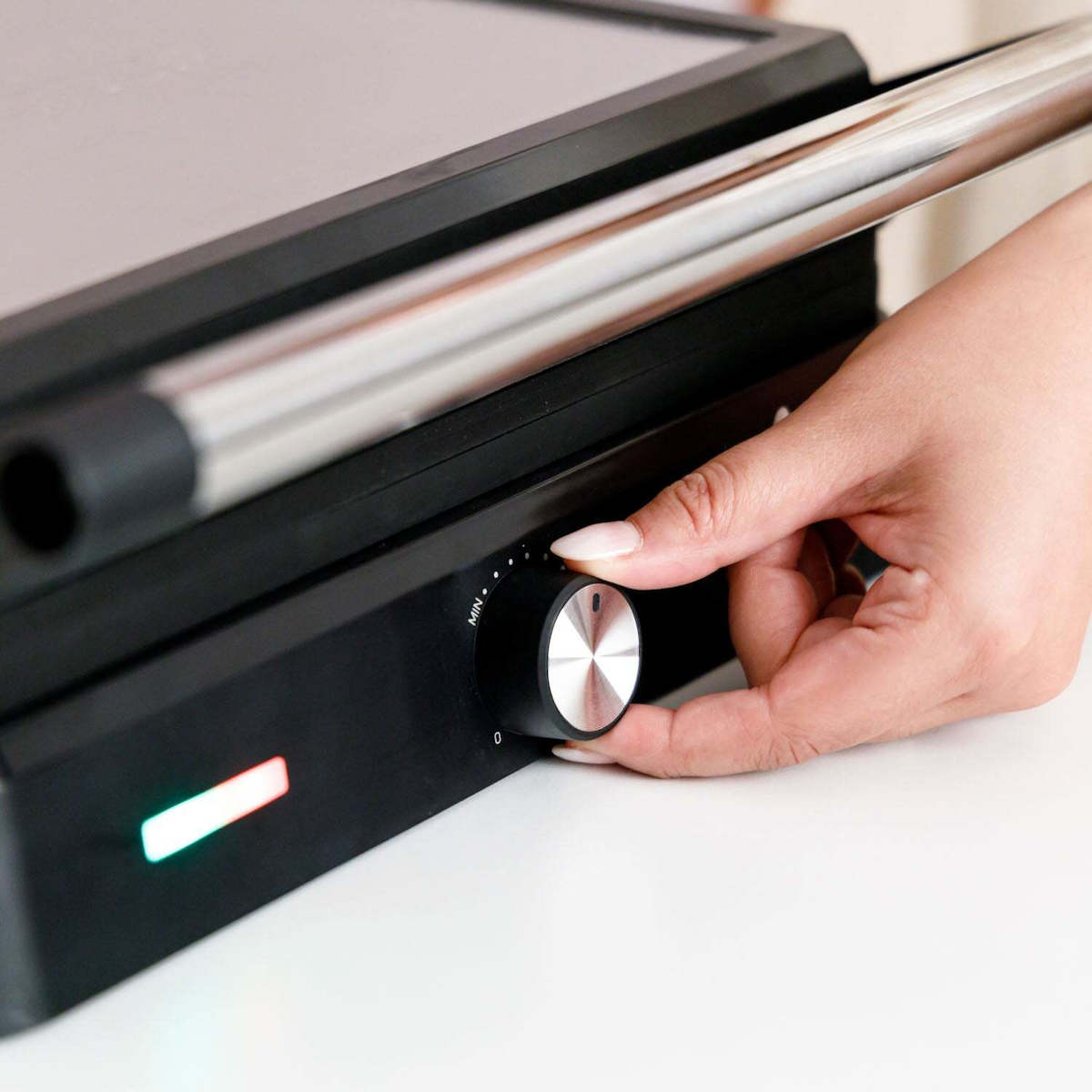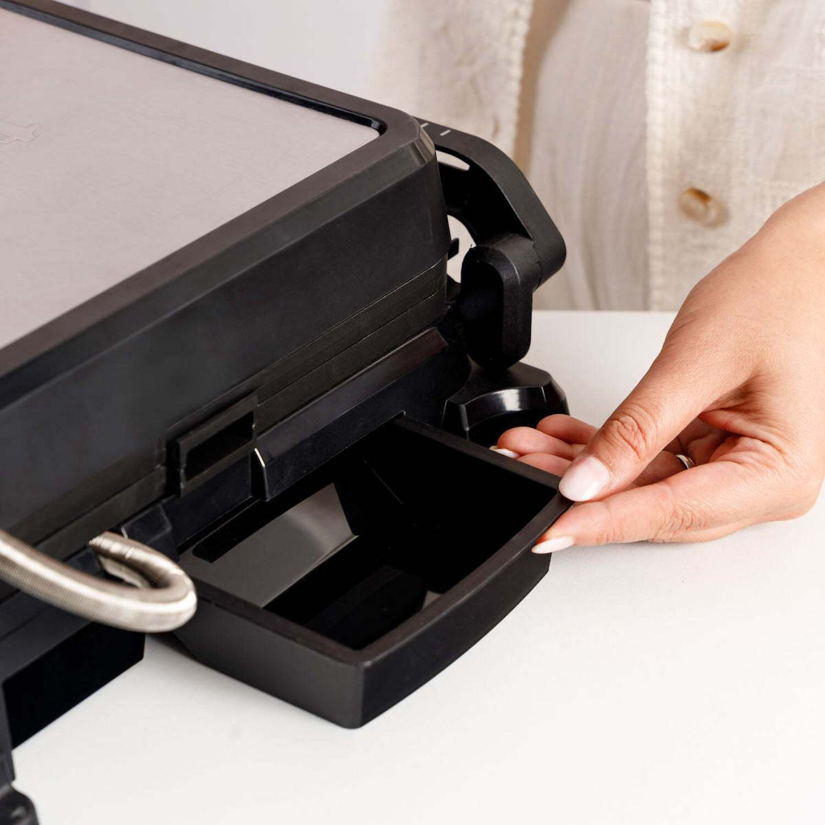 Η αντικολλητική επίστρωση χωρίς PFOA καθιστά εύκολο τον καθαρισμό και ο αφαιρούμενος δίσκος συλλογής λίπους εξασφαλίζει χρήση χωρίς προβλήματα. Επιπλέον, το άνοιγμα 180º και η χειρολαβή ψυχρής αφής εξασφαλίζουν ασφαλή χειρισμό.