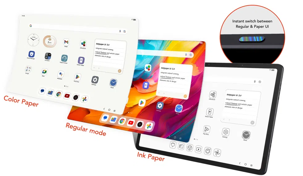 Άμεση εναλλαγή μεταξύ των 3 λειτουργιών UI με ένα αποκλειστικό πλήκτρο NXTPAPER για βέλτιστο εύρος χρωμάτων και βαθμό φωτεινότητας με ειδικά ισορροπημένη προστασία ματιών.