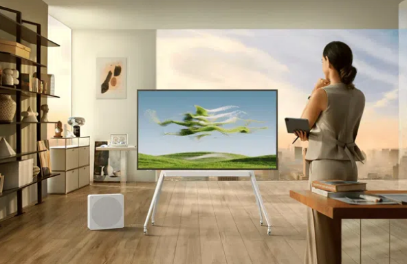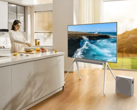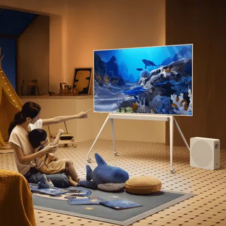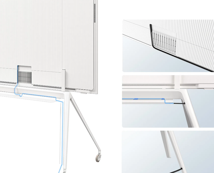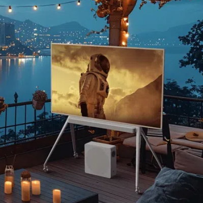 Εξοπλισμένη με βάση δαπέδου σε στυλ καβαλέτου και τροχούς, η τηλεόρασή σας μετακινείται ελεύθερα στο σπίτι, μεταμορφώνοντας κάθε γωνιά σε προσωπικό σας σινεμά για απολαυστική οπτικοακουστική εμπειρία.