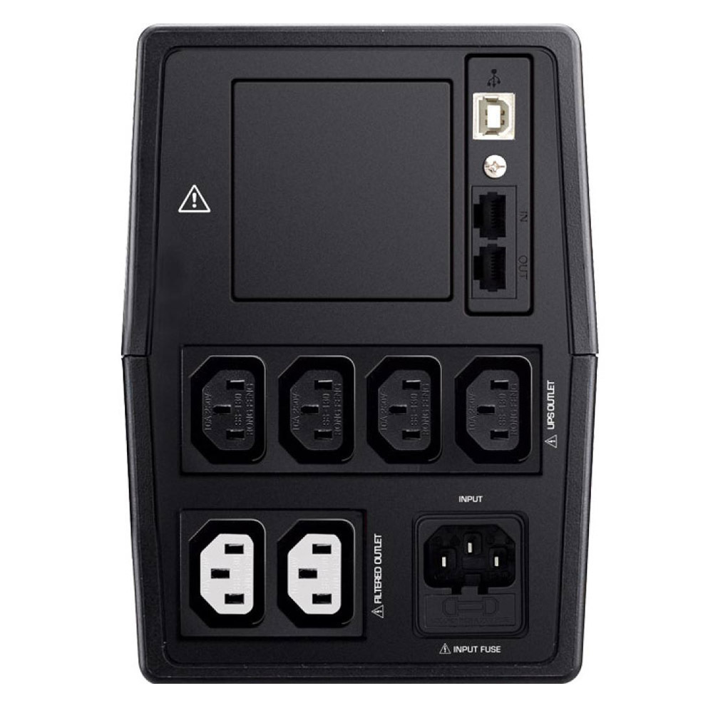 - Εξόδους: 6 Θύρες IEC320-C13 (2 φιλτραρισμένες). 4x θύρες προστατευμένες από διακοπή ρεύματος, 2x θύρες προστατευμένες από υπέρταση / υπόταση