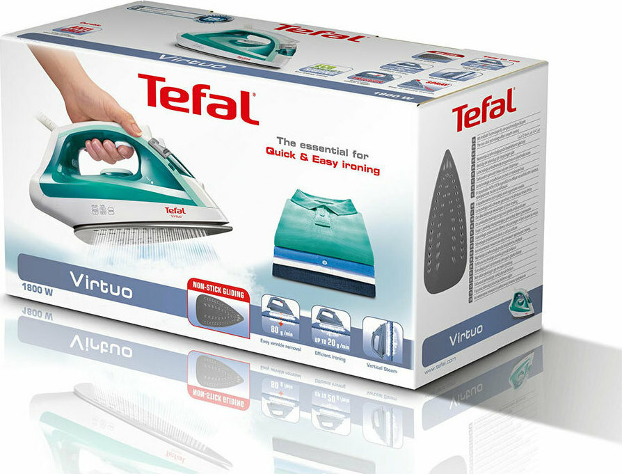 Σίδερο ατμού Virtuo προσφέρει μια γρήγορη και εύκολη εμπειρία σιδερώματος με τέλεια αποτελέσματα. Η συμπαγής σχεδίαση και η εργονομική σκανδάλη ατμού συνδυάζονται με μια αντικολλητική πλάκα για εξαιρετική ευκολία στη χρήση, με ισχύ 1800 W για γρήγορα αποτελέσματα και ενίσχυση ατμού 80 g για την αντιμετώπιση ακόμη και των πιο επίμονων τσακίσεων.