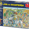 Από δεκαετίες ο Jan van Haasteren δημιουργεί ειδικά για τη μάρκα Jumbo, εξαιρετικά χρωματιστές χιουμοριστικές εικονογραφήσεις με προσοχή στην παραμικρή λεπτομέρεια. Δεν είναι λοιπόν έκπληξη ότι τα παζλ του Jan van Haasterena έχουν γίνει αναμφισβήτητος αριθμός 1 ανάμεσα στα κόμικ παζλ. Οι περισσότεροι θαυμαστές των έργων του αμέσως αρχίζουν να ψάχνουν το χαρακτηριστικό σημάδι του Jan – την πτερύγια του καρχαρία, που μπορεί να βρεθεί σε όλα τα παζλ του! Ωστόσο, μπορείτε να αναλάβετε την πρόκληση και να προσπαθήσετε να βρείτε και άλλα θέματα στα σχέδιά του, όπως τον Άγιο Βασίλη, χέρια που κρέμονται από τοίχους ή εμφανίζονται από το νερό, προσθετικά μέλη, ή αυτοπορτρέτα του Jan van Haasterena. Μπορείτε να τα βρείτε όλα;