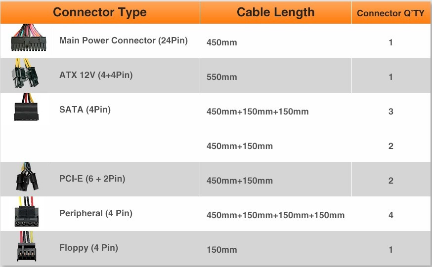 - 4x βύσματα Molex 4-pin για σύνδεση επιπλέον περιφερειακών
