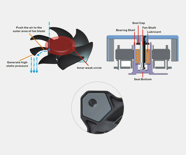 Σχεδιασμένο για υψηλές απαιτήσεις στατικής πίεσης απαιτητικών εφαρμογών. Η λεπίδα συμπίεσης έχει σχεδιαστεί για να εστιάζει τον ασθενέστερο, εσωτερικό κύκλο του αέρα προς τα έξω, επιτρέποντας στο εξωτερικό τμήμα να συμπιέζει τον αέρα. Τα πτερύγια ανεμιστήρα είναι βελτιστοποιημένα για να αυξάνουν τη στατική πίεση για μια εντυπωσιακή απόδοση ψύξης. Τα υδραυλικά ρουλεμάν για αθόρυβη λειτουργία εγγυώνται εξαιρετικά χαμηλό θόρυβο και το σύστημα ανάρτησης κατά των κραδασμών ενισχύει τη σταθερότητα του προϊόντος κατά τη λειτουργία. Επιπλέον, τα αντικραδασμικά ελαστικά μαξιλάρια με έγχυση παρέχουν χρήση χωρίς προβλήματα για κάλυψη προστασίας 80%, συμπεριλαμβανομένων και των τεσσάρων γωνιών.