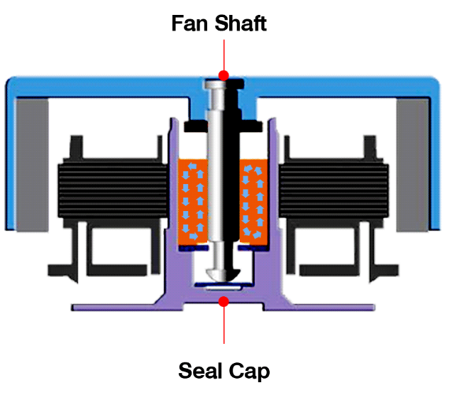 Το υδραυλικό ρουλεμάν αυτολιπαίνεται με μια υψηλής ποιότητας ουσία που μειώνει την τριβή, η οποία μειώνει τον θόρυβο λειτουργίας και ενισχύει τη θερμική απόδοση. Το καπάκι στεγανοποίησης αποτρέπει τη διαρροή του λιπαντικού και παρατείνει τη διάρκεια ζωής της μονάδας.