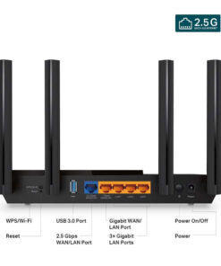 Ο δρομολογητής διαθέτει επίσης πολλαπλές θύρες Gigabit Ethernet, που επιτρέπουν τη σύνδεση ενσύρματων συσκευών όπως υπολογιστές, κονσόλες παιχνιδιών και εκτυπωτές για ακόμη μεγαλύτερη ταχύτητα και σταθερότητα.