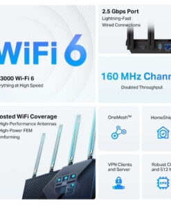 Υποστηρίζει το πρότυπο Wi-Fi 6 (802.11ax), το οποίο παρέχει ασύρματες ταχύτητες πολύ υψηλότερες από το προηγούμενο πρότυπο Wi-Fi 5. Αυτό σημαίνει ότι μπορεί να παρέχει ταχύτητες δικτύου που επιτρέπουν την ομαλή ροή βίντεο HD και Ultra HD, online gaming χωρίς καθυστέρηση και γενικά μια γρήγορη και αξιόπιστη σύνδεση στο διαδίκτυο για πολλές συνδεδεμένες συσκευές.