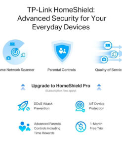 Με το TP-Link HomeShield, απολαύστε προηγμένες δυνατότητες ασφαλείας που προσφέρουν ένα ασφαλές περιβάλλον που προστατεύει τα δεδομένα και το απόρρητο της οικογένειας και του δικτύου σου. Στη διάθεσή σου έχεις σαρωτή οικιακού δικτύου για τον εντοπισμό πιθανών απειλών και ζητημάτων ασφάλειας, γονικό έλεγχο για να διαχειρίζεσαι το χρόνο στο διαδίκτυο και αποκλείεις ακατάλληλο περιεχόμενο και QoS, για να αναθέσεις τις αγαπημένες σου συσκευές για πιο γρήγορες συνδέσεις και κορυφαία απόδοση.