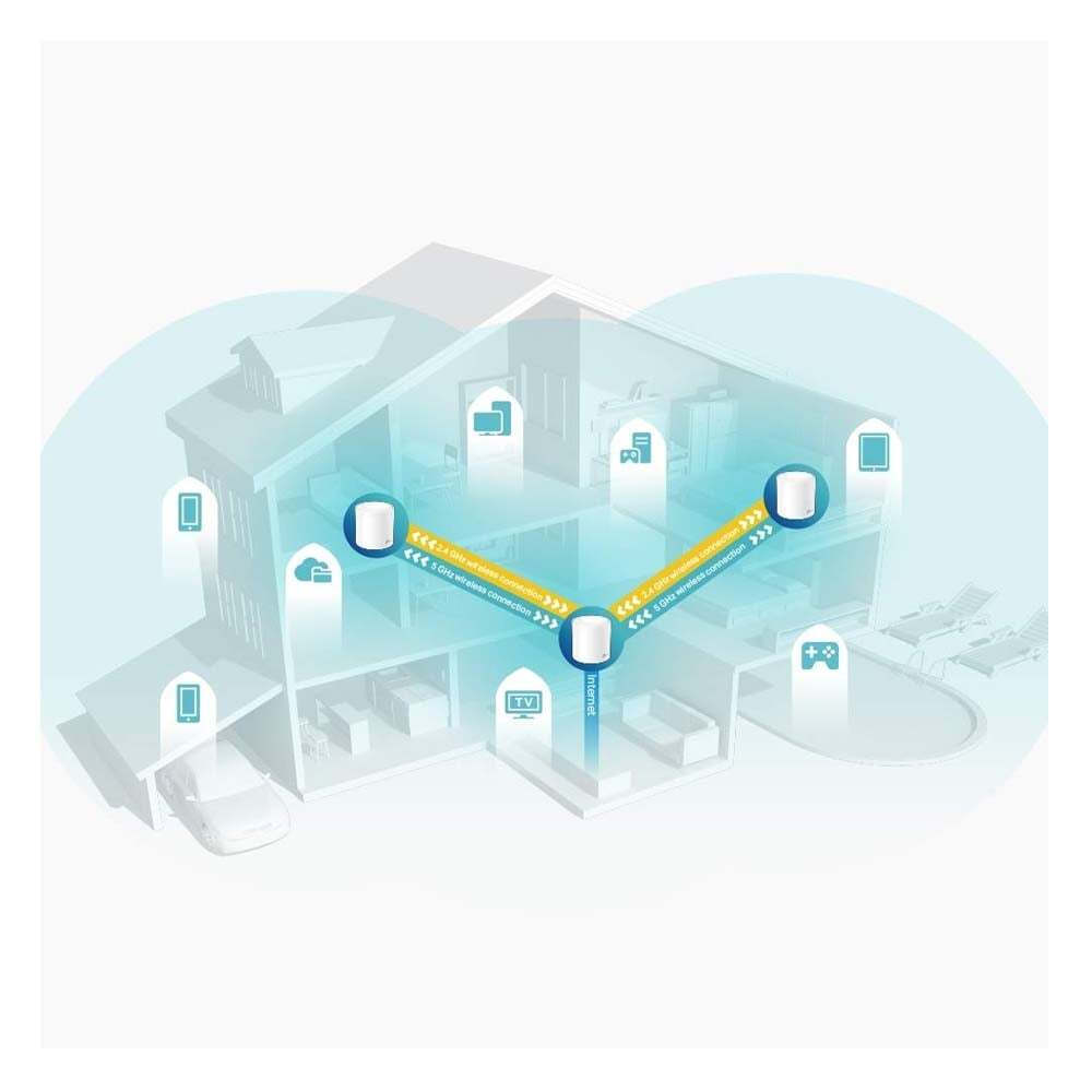 TP-Link Mesh σημαίνει ότι οι μονάδες Deco συνεργάζονται για να σχηματίσουν ένα ενοποιημένο δίκτυο. Το τηλέφωνο ή το tablet σας συνδέεται αυτόματα με το ταχύτερο Deco καθώς μετακινείστε στο σπίτι σας, δημιουργώντας μια πραγματικά απρόσκοπτη εμπειρία Wi-Fi.