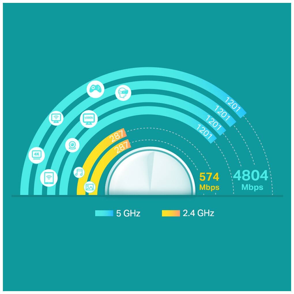 Ταχύτερες συνδέσεις: Wi-Fi 6 ταχύτητες έως 5.400 Mbps—4.804 Mbps στα 5 GHz και 574 Mbps στα 2,4 GHz.