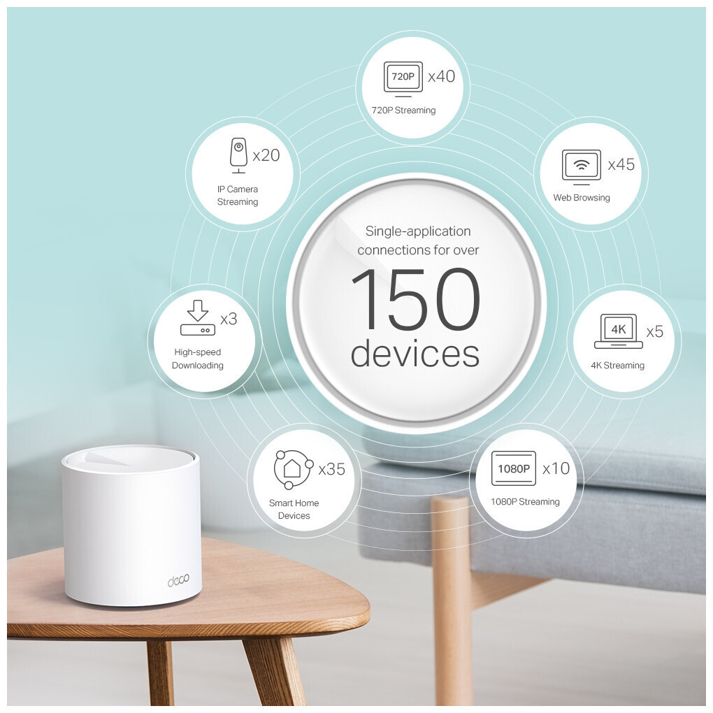 Οπλισμένο με τεχνολογία Wi-Fi 6, το Deco whole home mesh Wi-Fi έχει σχεδιαστεί για να προσφέρει τεράστια ώθηση στην κάλυψη, την ταχύτητα και τη συνολική χωρητικότητα. Αποκτήστε το Deco whole home mesh Wi-Fi για να απολαύσετε το μελλοντικό δίκτυο που φορτώνει γρηγορότερα με περισσότερες συνδέσεις.