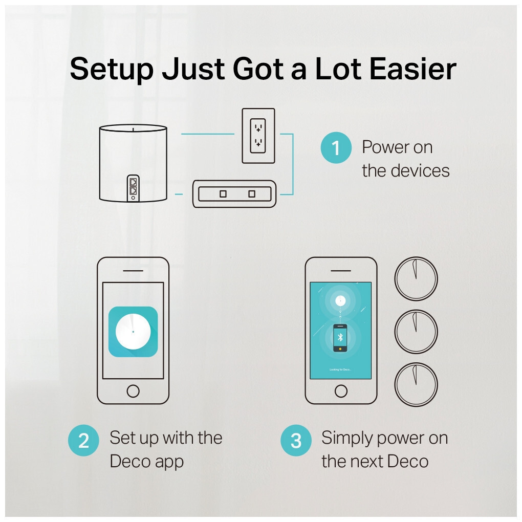 Βγάλτε το Deco από την συσκευασία, εγκαταστήστε την εφαρμογή και, στη συνέχεια, απλώς ακολουθήστε τις οδηγίες στην οθόνη. Η εφαρμογή Deco θα φροντίσει τα υπόλοιπα, παραμετροποιόντας το δίκτυο σας σε λίγα λεπτά.