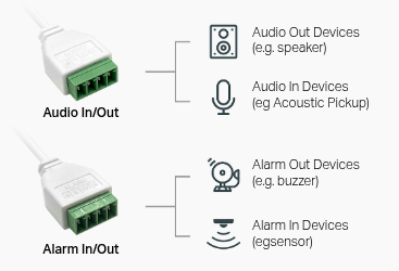 Οι θύρες εισόδου/εξόδου ήχου και εισόδου/εξόδου συναγερμού επιτρέπουν την εύκολη ενσωμάτωση με εξωτερικές συσκευές συναγερμού ή ελέγχου πρόσβασης.