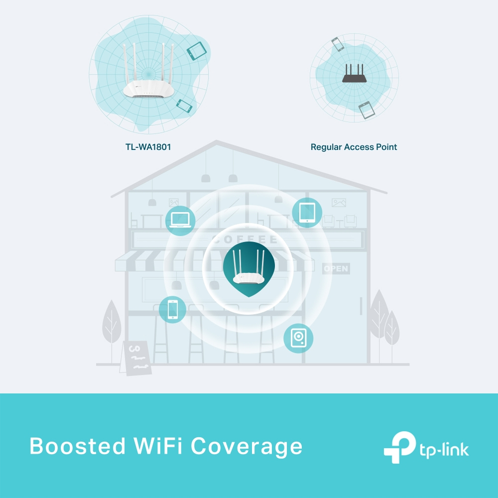 Αναβαθμίστε το δίκτυο του σπιτιού ή του γραφείου σας με το τελευταίας γενιάς σημείο πρόσβασης διπλής ζώνης 802.11ax, το οποίο προσφέρει συνδυασμένες ταχύτητες έως και 1800 Mbps και είναι ιδανικό για την ταυτόχρονη εξυπηρέτηση πολλαπλών συσκευών. Η ζώνη 5 GHz είναι ιδανική για ροή βίντεο Ultra-HD και online gaming, ενώ η ζώνη 2,4 GHz είναι εκεί για όλες τις καθημερινές σας ανάγκες στο Internet, όπως η αποστολή email και η περιήγηση στο Internet.